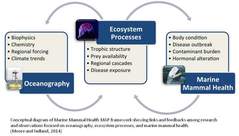 Marine mammals face an increasing number of health threats. The increasing frequency of emerging diseases, harmful algal blooms (HABs), and human interactions suggest a decline in marine mammal health. However, scientific publications about these events are not a reliable indicator of underlying health trends (Simeone et al 2015). Access to centralized, standardized marine mammal health data is important to help highlight and understand the connections between oceanography, ecosystem processes and marine mammal health. The Marine Mammal Commission and the National Oceanic and Atmospheric Administration’s (NOAA’s) National Marine Fisheries Service (NMFS) Office of Protected Resources, in collaboration with Axiom Data Science and other partners, have been developing a nationally centralized, ultimately near-real-time, system for reporting data on marine mammal health called the Marine Mammal Health Monitoring and Analysis Platform (MMHMAP). Beginning in October 2016 a project led by Axiom Data Science is working to develop the user interface, visualization and analysis tools for Health MAP.