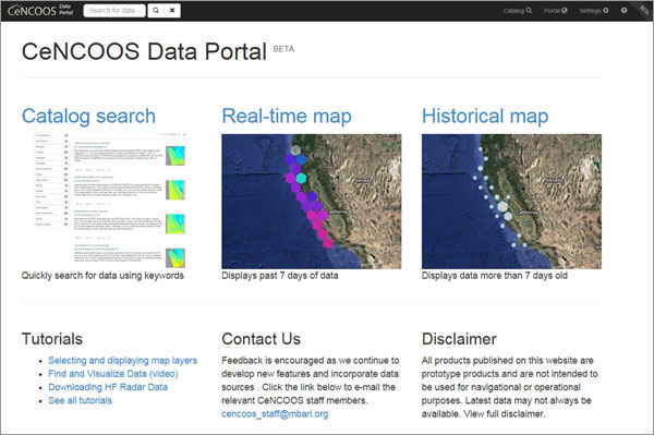 Axiom ingested CeNCOOS-held data from shore stations, gliders, HF radar, ROMS and COAMPS models, moorings, satellite images, and project-level observational data into our scalable data management framework. We built a metadata catalog, to which we added intuitive tags allowing people to quickly browse datasets using common, human-readable terms. We used a fast Elastic Search interface that gives hints to existing metadata entries as users type. Crucially, the search interface indexes the entire metadata page, weighted by relevancy, so users don't have to be familiar with any controlled sets of keywords. The catalog is also directly connected to a visualization portal, so users don't have to download data before they even know if it's relevant to their needs.